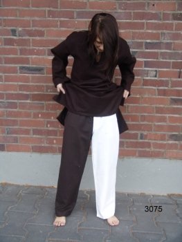 Wer noch immer an der Vorstellung festhält, "typische" Mittelalter Hosen ähnelten eng anliegenden Leggings, wird mit diesem Modell eines Besseren belehrt. Die aus vielen Verfilmungen und von zahlreichen Illustrationen bekannten Beinlinge waren nämlich nur eine Varietät aller in Frage kommenden Mittelalter Hosen. Wesentlich verbreiteter - und bequemer! - waren Beinkleider wie dieses hier.